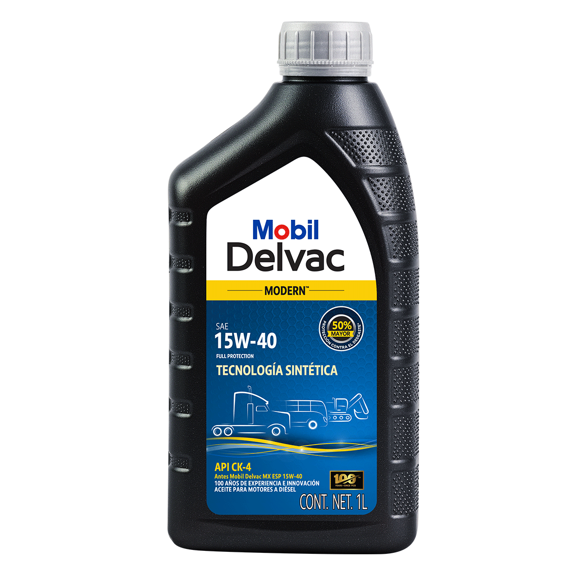 Mobil Delvac Modern™ 15W-40 Full Protection es un aceite de tecnología sintética para motores diésel que ayuda a prolongar la vida útil del motor, lo cual le