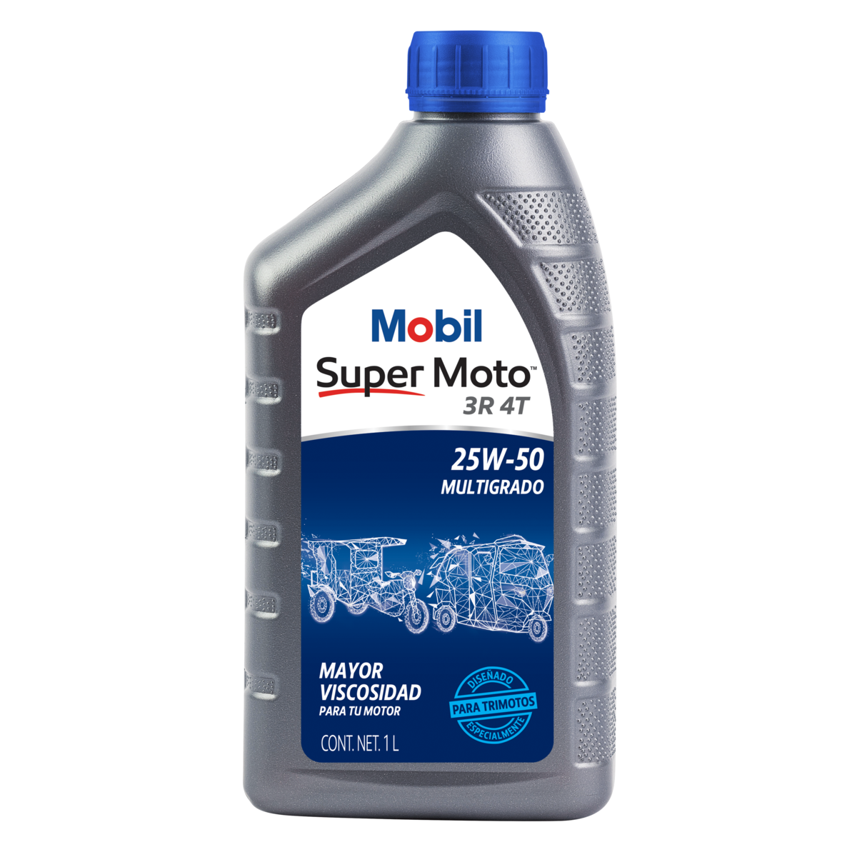 Mobil Super Moto™ 3R 4T 25W-50 es un aceite convencional de alto rendimiento para motores de motocicletas de cuatro tiempos destinado principalmente para uso general en motocicletas triciclo. Está formulado para proteger contra las altas exigencias y elevadas cargas de las condiciones